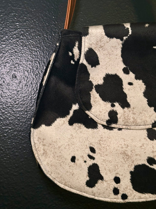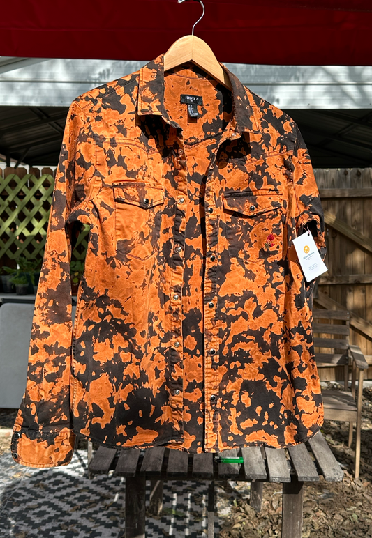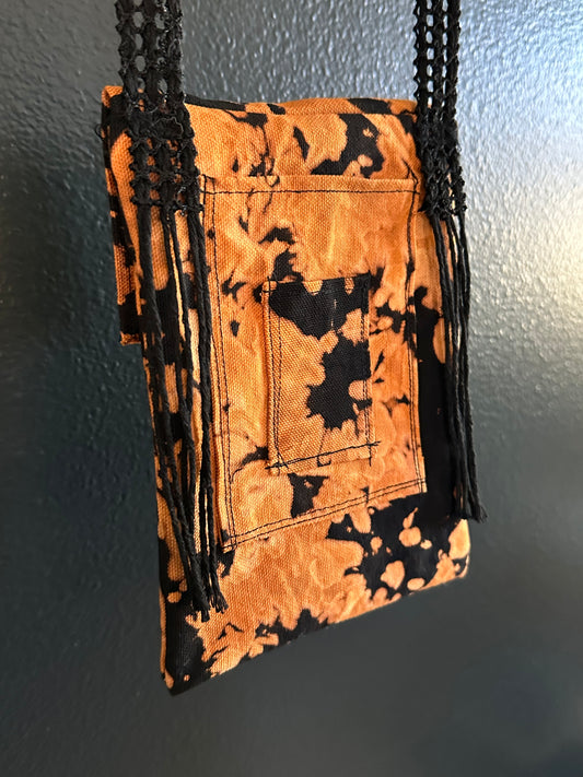 Handmade Bleached Orange and Black Denim Crossbody Purse