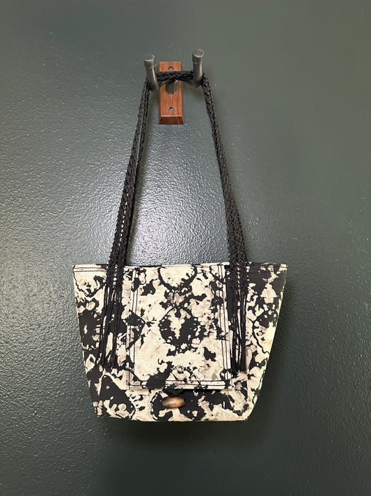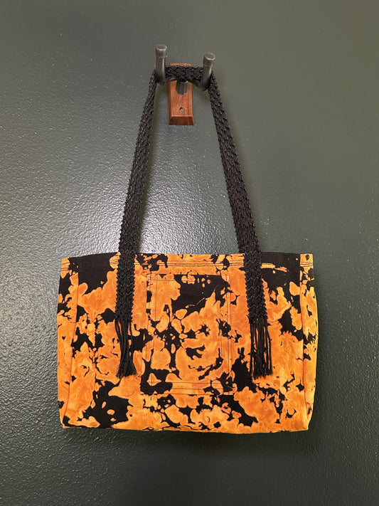 Handmade Bleached Orange and Black Denim Shoulder Purse